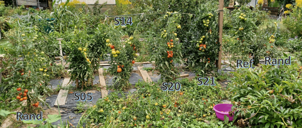 Die weiteren Ergebnisse wurden am Versuchsfeld in Parzelle 47 ermittelt. Als Randpflanzen fanden Stabtomaten unbekannter Sorten Verwendung.