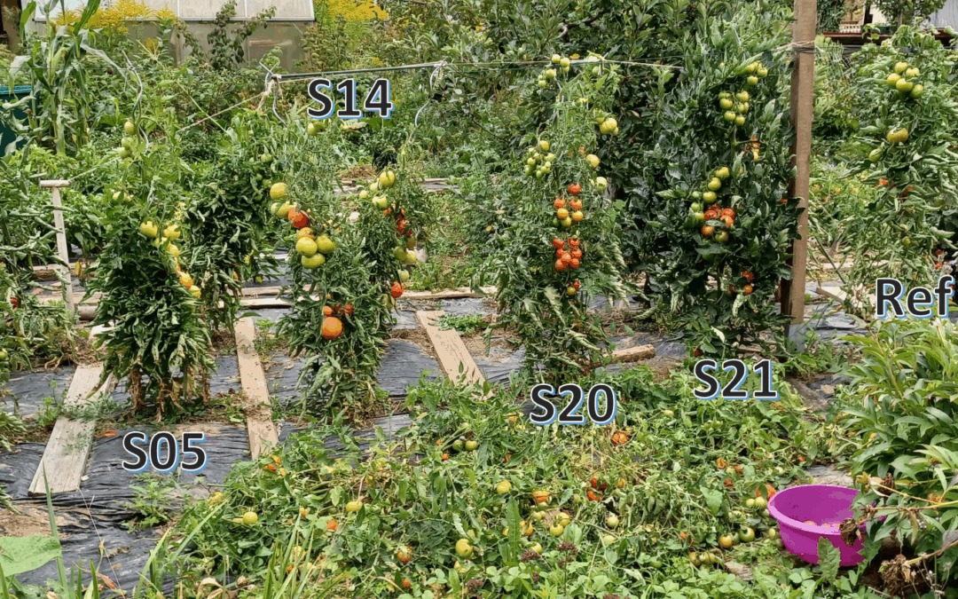 Beim Ertrag gab es mit der Sorte S14 einen klaren Gewinner mit fast 2,7 kg reifer Tomaten pro Pflanze. S14 überzeugte auch mit dem Geschmack der Früchte sowie der vielseitigen Verwendung. S14 ist vom Typ eine Fleischtomate, gut platzfest und trotzdem mit angenehm dünner Schale, die sich bei Vollreife leicht pellen lässt.